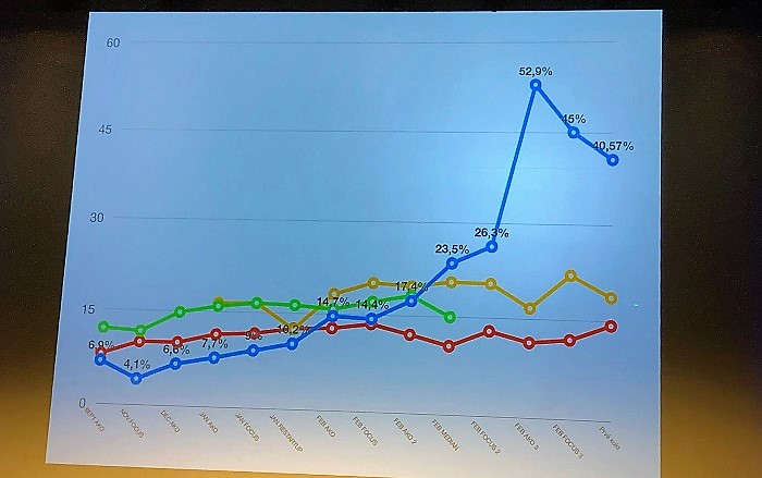 Po několika měsících stagnace, kdy se spontánní povědomí dlouho pohybovalo okolo 7 %, začalo v letošním roce růst. Růst odstartovalo prohlášení, že buď Zuzana Čaputová, nebo Robert Mistrík se vzdají ve prospěch toho druhého, aby ten silnější měl větší šanci proti antisystémovým kandidátům. Následovaly diskuse s Mistríkem, které Čaputové pomohly a v polovině února již na diskuse s ní běžně přijíždělo i 300 lidí z řad veřejnosti. Veřejnost se také zapojila do crowdfundingu, přes který volební tým vybral 250 tisíc eur od pěti tisíc malých dárců, kteří tak zafinancovali polovinu kampaně.
