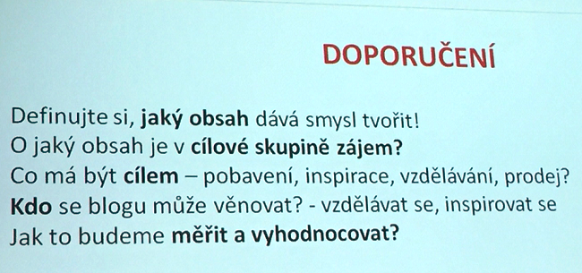 Slevový server Pepa.cz dopady obsahového marketingu na své tržby změřil. Jak na konferenci uvedla marketingová manažerka Jana Bačová, mají představovat 3 % ročního obratu. Přináší je firemní blog, který vznikl loni na jaře a jehož průměrná návštěvnost představuje 1 tisíc uživatelů. Obsah cílí jak na zákazníky, tak na zaměstnance, dodavatele či novináře. Rozhodující je jeho kvalita a autenticita.