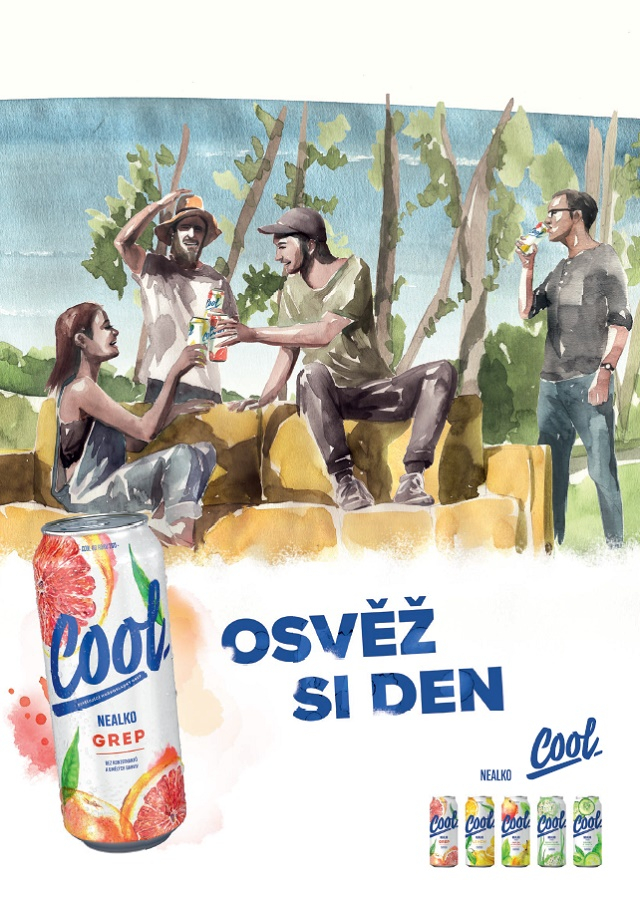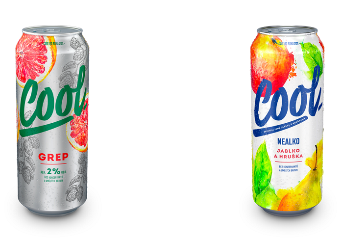 Celá řada značky Cool prošla redesignem. „Snažili jsme se, aby nové obaly působily svěžím dojmem a byly lépe rozlišitelné. Zvolili jsme originální akvarelové kresby ovoce, které jsme vytvořili značce Cool na míru se studiem Stojkov. Nové bílé plechovky jsou opatřeny modrým písmem, které i nadále reprezentuje naši nealko řadu. Stříbrným plechovkám s alkoholickými variantami naopak dominuje písmo zelené, doplněné o akvarelové ovoce a vektorovou kresbu chmele,“ popisuje změny manažerka značky Cool Zuzana Cieciotková.