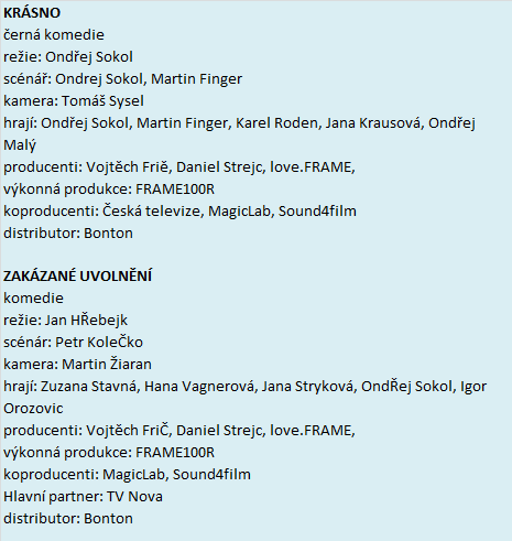 Producenti filmu Ondřeje Sokola Krásno a Jana Hřebejka Zakázané uvolnění podepsali dohodu s CSFD.cz. Oba filmy budou mít premiéru v první polovině příštího roku. Největší filmová databáze v ČR, portál CSFD.cz se stal nejen mediálním partnerem, ale také koproducentem filmu.