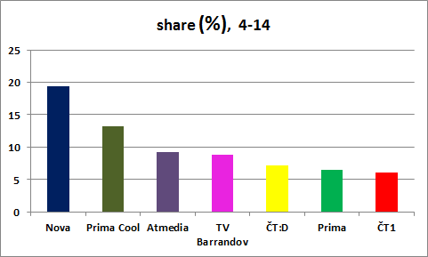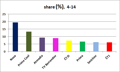 Dětský kanál vysílá pouze do 20:00 (od 6:00 do 20:00), následně navazuje kulturní kanál ČT art. Abychom u všech kanálů ponechali stejnou metriku srovnání, uvádíme podíly v přepočtu na celý den (tj. 24 hodin).