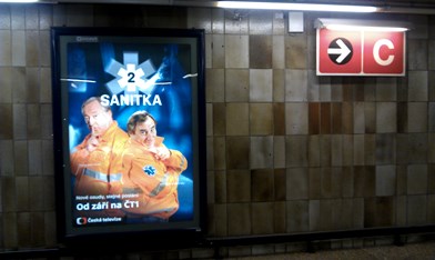 Česká televize podporuje v outdoorové kampani svoji velkou podzimní programovou novinku – seriál Sanitka 2, která navazuje na původní seriál z poloviny 80. let. V pražském metru se na nosičích společnosti euroAWK objevuje několik plakátů ve vitrínách (CLV).