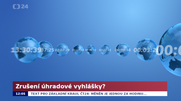 Česká televize představila nové grafické vybavení kanálu ČT24. Poprvé od svého vzniku v roce 2005 má mít zpravodajská stanice jednotnou podobu. Většina pořadů, které se objevují na kanálu ČT24, tak má od dnešního dne svoji novou vizuální podobu, a to včetně znělek, jejichž hlavním motivem jsou toky dat a informací kolem modelu planety Země. Dalším prvkem, který se bude prolínat celým vysíláním ČT24, je modrá barva. Jednotnou podobu tak nyní budou mít například i Události v regionech, které se vysílají ze tří různých televizních studií.