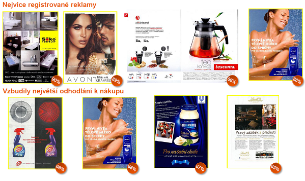 Zjistila, že průměrné zaznamenání reklamy představuje 57 %. U některých tiskových inzerátů může být jen 21 % (nejnižší zaznamenaná hodnota), u některých až 90 %. Lépe, než je celkový průměr, vykazuje zaznamenatelnost například kategorie kosmetických výrobků (66 %). Právě porovnání úspěšnosti jednotlivých inzerátů podle produktových kategorií v jednotlivých časopisech výzkum umožňuje. Podle aktuálních výsledků si 85 % respondentů spojilo reklamu se značkou, 60 % pak na reklamu reagovalo.