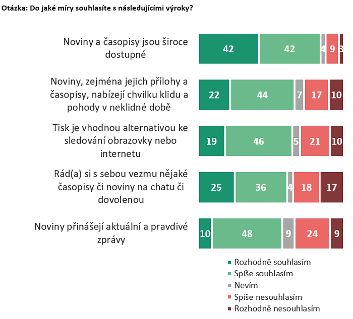 „Za největší výhody tisku oproti jiným médiím považují účastníci výzkumu především časovou flexibilitu – k článkům je možné se vracet kdykoliv, číst je podle vlastní nálady a volného času a tak dlouho, jak to čtenář uzná za vhodné," uvedl Jan Burianec ze Stem/Mark.