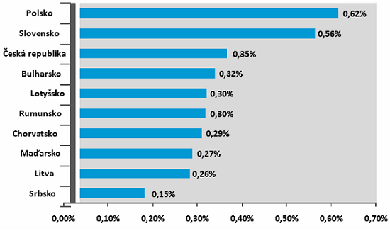 Míra prokliku v České republice patří v regionu CEE mezi nižší a udržuje se od roku 2011 přibližně na stejné úrovni 0,35 %.