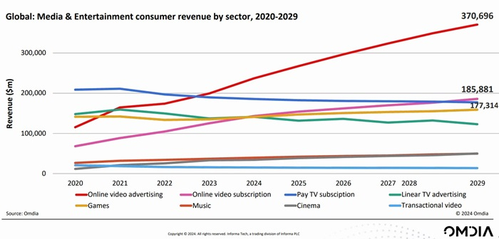 CTV reklama patří společně s retail médii, reklamou na sociálních sítích a ve vyhledávání k nejrychleji rostoucím reklamním kanálům. Podle odhadu společnosti Omdia je online video s náskokem největší a nejrychleji rostoucí mediální platformou, která má v roce 2029 dosáhnout objemu na úrovni 330 mld. USD. To je zhruba o třetinu více než v letošním roce a více než dvojnásobek než v roce 2020. S odstupem následují příjmy předplatného z video streamingu a placené TV.