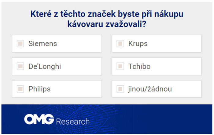 Prostřednictvím bannerové OMG Brand Liftu byla zvolena otázka: „Které z těchto značek byste při nákupu kávovaru zvažovali?“ Náhled banneru je možné vidět níže.