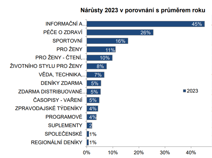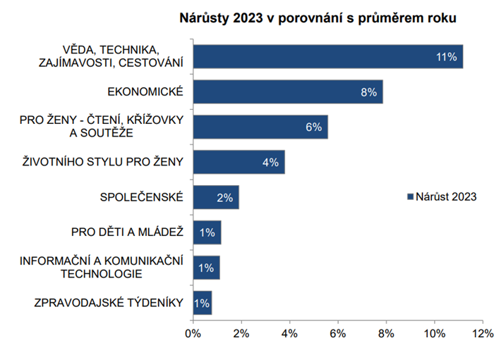 Letní období je podle dat prodaného nákladu příznivé pro tituly o vědě, technice, zajímavostech a cestování, tituly ekonomické, křížovkářské nebo životního stylu pro ženy. Prodá se jich o prázdninách více, než je jejich běžný roční průměr. Vyšší čtenost pak v letním období vykazují zejména časopisy zaměřené na informační a komunikační technologie, péči o zdraví, sportovní časopisy nebo časopisy pro ženy.