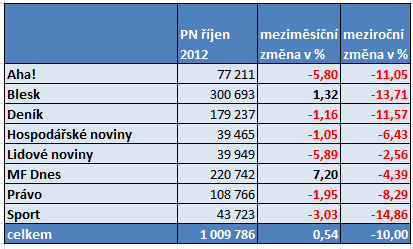 V meziročním srovnání je však stále patrný 10% pokles prodaného nákladu českých deníků.