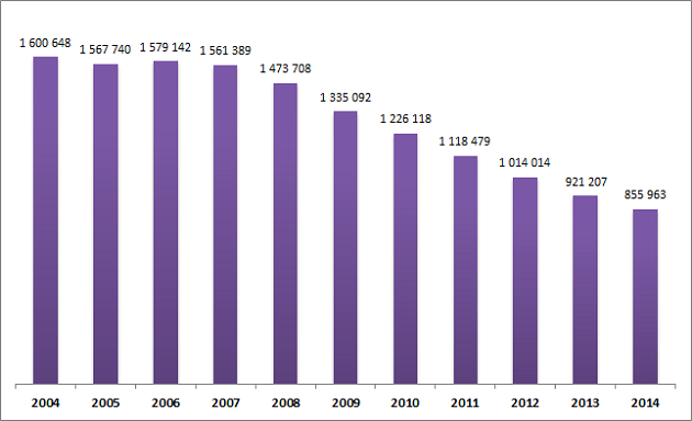 Průměrný prodaný náklad tuzemských deníků dosáhl v loňském roce podle dat ABC ČR celkové výše 856 tisíc výtisků. Ve srovnání s předešlým rokem 2013 se průměrný denní prodej snížil o 66 tisíc kusů, což představuje 7% pokles. Znamená to, že noviny v loňském roce zmírnily pokles prodaného nákladu. V posledních třech letech klesaly vždy meziročně o 9 %. Za období deseti let od roku 2004 se průměrný prodej novin snížil o necelou polovinu.
