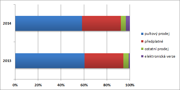 Z celkové struktury prodejů tuzemských deníků vyplývá, že jsou většinově stále postavené především na pultovém prodeji (60 %) a předplatném (33 %). Na ostatní prodej a elektronické verze připadají 4 %, resp. 3 % z celkového prodaného nákladu.