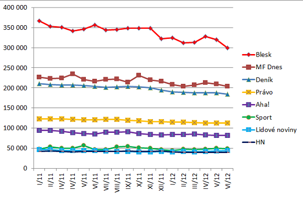 Z období prvních šesti měsíců letošního roku vyplývá, že prodané náklady více klesaly ve skupině deníků bulvárních a sportovních. Lídr v prodeji tuzemských deníků Blesk snížil svůj průměrný prodaný náklad ze všech deníků v pololetí nejvíce (-10 %). Zpravodajských deníků se v průměru prodává v Česku více než deníků bulvárních a sportovních, i když rozdíl už není tolik výrazný.
