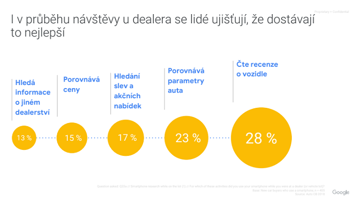 „Díky internetu se člověk po pár kliknutích dostane k recenzím řidičů, předváděcím videím a online srovnávačům a konfigurátorům, které nesmírně šetří čas a poskytují více zdrojů informací. Když se poté potenciální zákazník rozhodne osobně navštívit prodejce, už má většinou konkrétní představu, jaký typ auta by si chtěl prohlédnout,” uvedla Ivana Giardi, manažerka pro vztahy s agenturami ve společnosti Google.