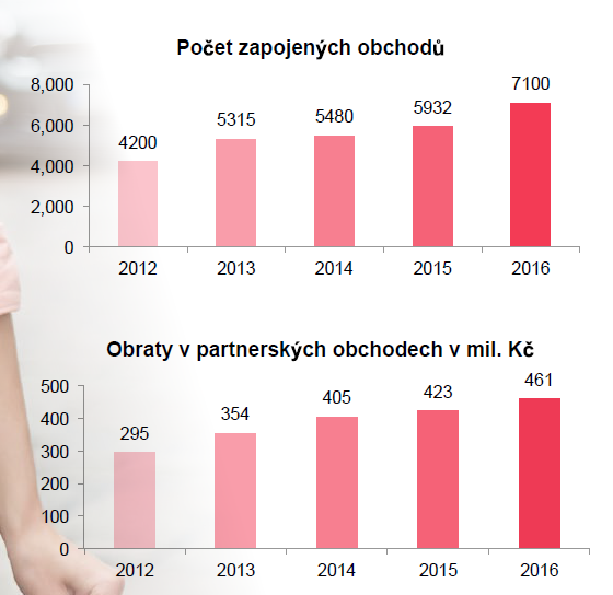 V roce 2016 dosáhl počet zúčastněných obchodů 7 100 s obratem 461 miliónů Kč.