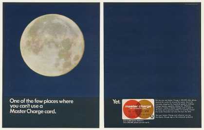 Po slavném dobytí vesmíru americkou posádkou Apolla 11 v roce 1969 byl Měsíc v reklamě velmi často obsazovaný a značky se o něj přímo praly. Zmiňme například na americkou reklamu ze 70. let minulého století na kartu MasterCharge se sloganem: Jedno z mála míst, kde nelze použít kartu MasterCharge. Zatím. (One of the few places where you can’t use a MasterCharge card. Yet.)