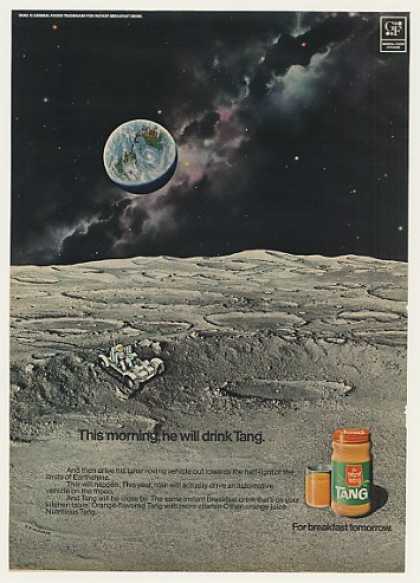 Nebo reklamu na nápoj Tang, která využila se sloganem „Dnes ráno bude pít Tang.“ (This morning he will Tang.) jako motivu výkon Neila Armstronga na Měsíci.