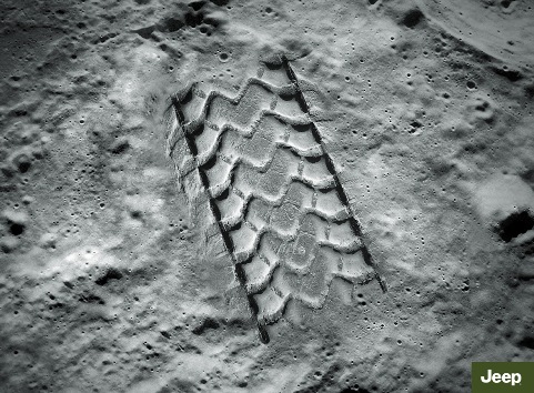 Čínská kampaň z roku 2009 od agentury Raynet-Ogilvy zase na Měsíci otiskla stopu Jeepu.