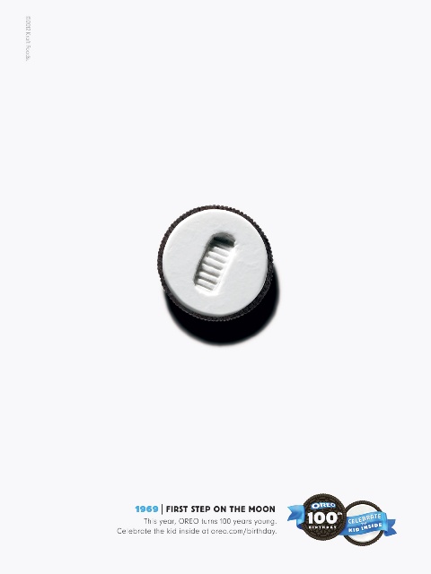 V kampaních také velmi často využívá motivu Armstrongova prvního kroku na Měsíci ve znamení světoznámé věty: „Je to malý krok pro člověka, ale velký skok pro lidstvo.“ Jeho stopy využily letos například sušenky Oreo v americké kampani od agentury Draftcb.