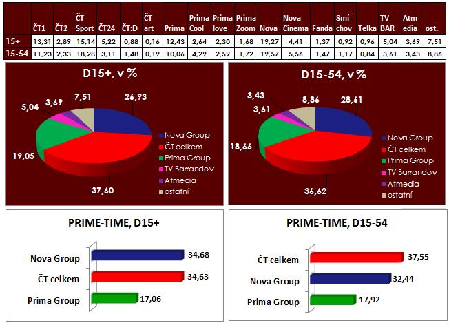 Sledovanost večerních pořadů se vrátila do obvyklejších kolejí. Seriál Doktoři z Počátků (TV Nova) se stal s průměrnou sledovaností 1,3 mil. diváků starších 15 let nejsledovanějším pořadem po 20. hodině. Pomohl tak skupině Nova k těsně nejvyššímu podílu v hlavním vysílacím čase (D15+).