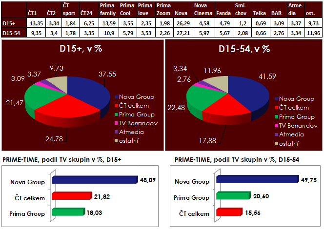 | Mentalista | TV Nova | 22:08 | 599 | 25,6 | 26,2 |