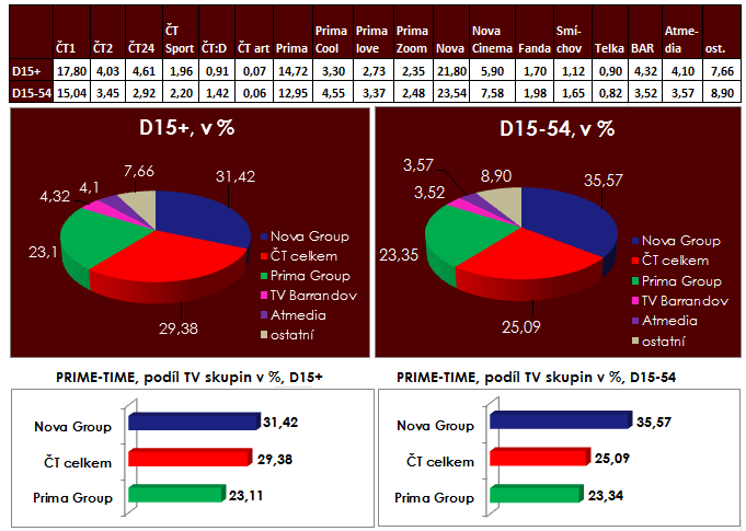 Českou komedii Tady hlídám já (ČT1) sledovalo v čase vysílání po 20. hodině více jak 800 tis. diváků nad 15 při podílu 19 %. Reality show Česko Slovensko má talent (Prima) si stále udržuje publikum nad 600 tis. diváků starších 15 let (share 17 %, v 15-54 podíl 20 %).