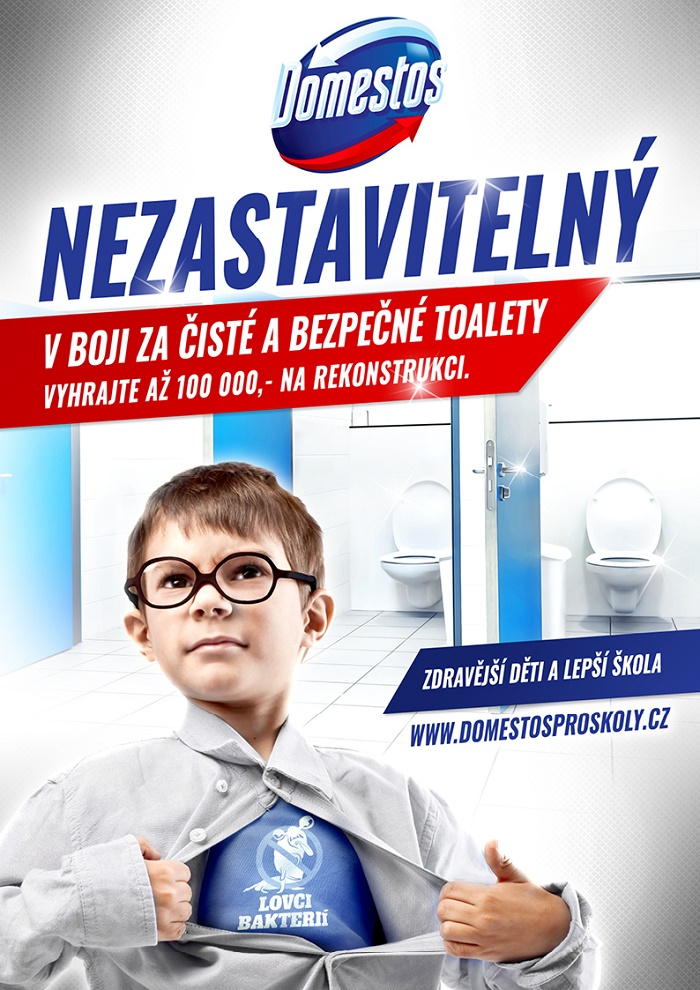 Domestos spouští od září kampaň na podporu šestého ročníku projektu Domestos pro školy. Jeho cílem je finančně podpořit školy a školky v Česku a na Slovensku a pomoci jim s rekonstrukcí toalet. Doposud věnovala značka čisticích prostředků společnosti Unilever na podobné účely osm milionů korun, a umožnila tak obnovu toalet v 75 školách.