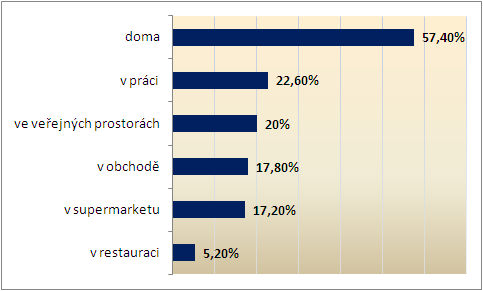 Většina uživatelů (57 %) skenuje kódy v domácím prostředí, téměř čtvrtina (23 %) v práci. O něco menší procento uživatelů pak kódy skenuje ve veřejné dopravě, v obchodě nebo v restauraci.