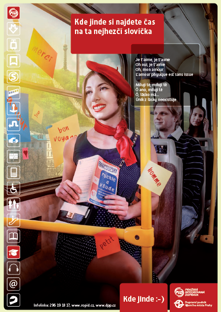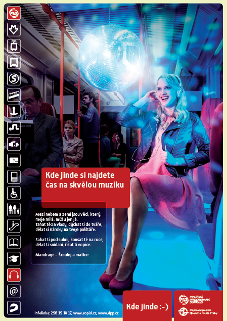 Milan Křístek, generální ředitel Dopravního podniku, koncept kampaně vysvětluje: „Chceme veřejnosti ukázat výhody cestování MHD, které často už ani nevnímáme. Plakáty lidem ukážou, že si na některé věci najdeme čas opravdu jen během těch pár desítek minut cestou v tramvaji nebo metru – oblíbenou knížku, noviny, osobní i pracovní e-maily nebo třeba učení se cizích jazyků. To za volantem opravdu nezvládnete.“ Jednotlivé vizuály jsou doplněny texty, jejichž součásti jsou například úryvky z knihy Účastníci zájezdu Michala Viewegha nebo text písně Šrouby a matice hudební skupiny Mandrage.