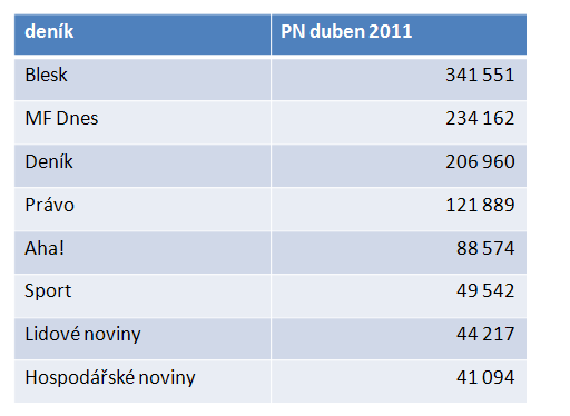 Průměrný prodaný náklad tuzemských deníků v dubnu dosáhl souhrnně