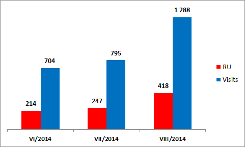 Návštěvnost internetového videokanálu DVTV, který od letošního května produkuje pro Aktuálně.cz společnost Martina Veselovského a Daniely Drtinové, překročil v srpnu úroveň 400 tisíc reálných uživatelů měsíčně, uvedl na konferenci o videoreklamě, kterou tento týden pořádal server Médiář.cz, Pavel Vopařil z Economie. Oproti výsledkům za červen a červenec to znamená téměř 100% nárůst. Zvyšuje se také počet návštěv, které se v srpnu přiblížily k hranici 1,3 milionu.