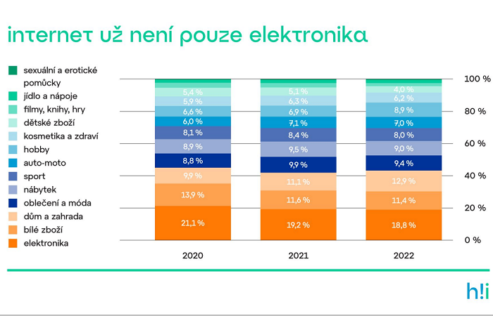 V Heureka Group sledují e-shopy a jejich vývoj dlouhodobě. Začátky růstu e-commerce táhly v letech 2017-2018 především prodeje v kategoriích bílé zboží a elektronika, postupem času se začaly objevovat další kategorie, ovšem vývoj šel v tomto směru pomalu. První velký třesk přišel podle Martina Slavětínského na jaře 2020 v době první pandemie. „Tady jsme zaznamenali první razantní změnu a viděli jsme posilování v kategorií jako je sport, kosmetika, zdraví, hobby nebo dům a zahrada,“ popsal. Speciálně kategorie dům a zahrada zaznamenávala velký růst, a to ještě v prvním kvartálu 2021. Tento posun se propsal i do roku 2022.