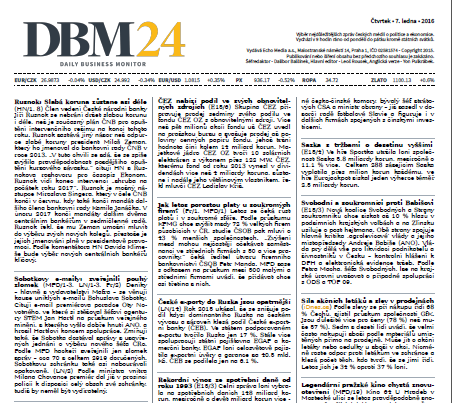 Společnost Echo Media si u Úřadu průmyslového vlastnictví požádala o registraci ochranných známek Daily Business Monitor 24 a DBM 24 Daily Business Monitor. Chce je využít pro svůj chystaný projekt denního monitoringu médií, který v ostrém režimu plánuje spustit nejpozději do konce ledna.