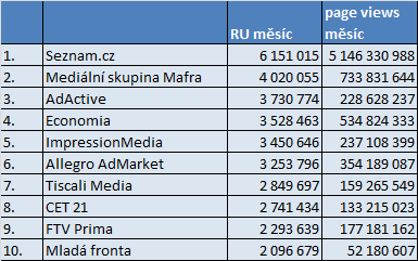 Oproti první loňské lednové desítce vypadly z letošních TOP 10 společnosti Ringier Axel Springer CZ a Hyper Media.