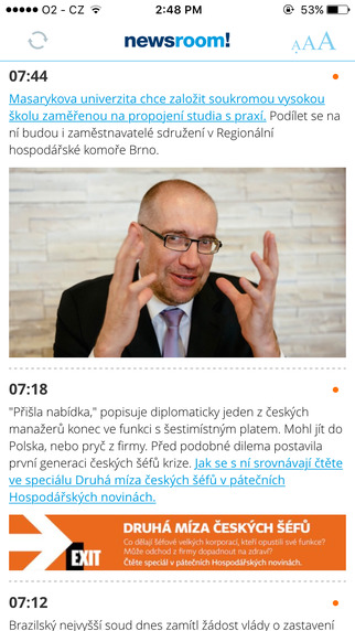 Economia spustila novou aplikaci pro chytré mobilní telefony pod názvem newsroom!. Aplikace přináší výběr zpráv nejenom z mediálního domu Economia, ale také ze světa, sociálních sítí, videa a fotografie. Pro čtenáře je aplikace zdarma. Pro inzertní klienty nabízí aplikace newsroom! možnosti prezentace jejich produktů a služeb.