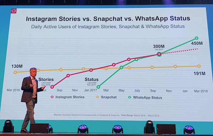 Na Instagramu si oblibu získává také formát Stories, kde sdílený obsah zmizí do 24 hodin. Už nyní má více denních uživatelů než Snapchat, který s tímto formátem mizejícího obsahu původně přišel.