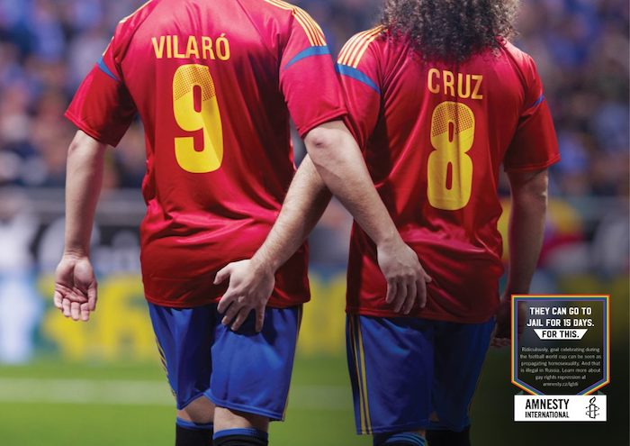 S printovou kampaní „Nelegální oslava“ připravenou pro Amnesty International zvítězila agentura Havas Prague v kategorii Veřejný zájem – společnost. Cílem kampaně bylo poukázat na absurditu ruského zákona proti propagaci homosexuality a podpořit práva gayů a leseb v Rusku. Zveřejnění bylo načasováno na dobu, kdy se v největší zemi světa odehrával fotbalový šampionát.