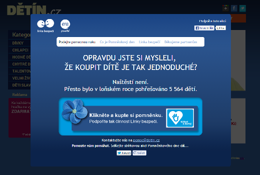 V internetové kampani se pustila Linka bezpečí ve spolupráci se společností Era do „prodeje dětí“. Nabízí děti hodné, chytré nebo talentované na speciálním e-shopu www.detin.cz, kde se po jakémkoliv prokliku však objeví inzerát upozorňující na možnost přispět na činnost Linky bezpečí prostřednictvím koupě elektronické pomněnky. Cílem kampaně je kromě sbírky také upozornit na problematiku ztracených a pohřešovaných dětí.