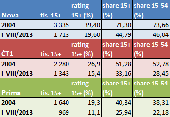 Změnu televizního prostředí a chování televizních diváků názorně ukazuje analýza diváckého chování v uplynulých deseti letech. Dřívější pozornost diváků k hlavním třem televizním stanicím: TV Nova, ČT1 a TV Prima se postupně rozmělňuje a na milionová publika, kterých jednotlivé stanice pravidelně u hlavních večerních pořadů dosahovaly, se dnes dostane jen několik televizních formátů.