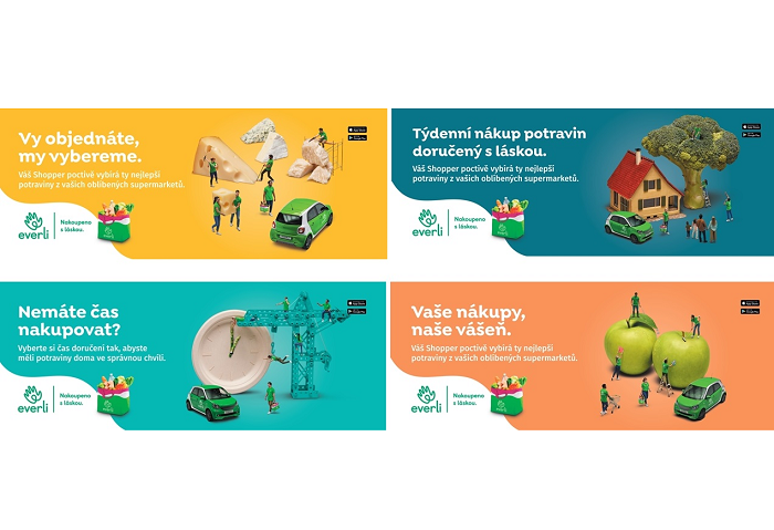 Evropské online tržiště s potravinami Everli spustilo na podzim novou mezinárodní kampaň s hlavním claimem: „Nakoupeno s láskou". Má zákazníky upozornit na hlavní přednosti tohoto konceptu, kdy nákup obstarávají konkrétní nákupčí – shoppeři osobně v jednotlivých řetězcích a rozvážejí jej pak ve vlastních vozech.