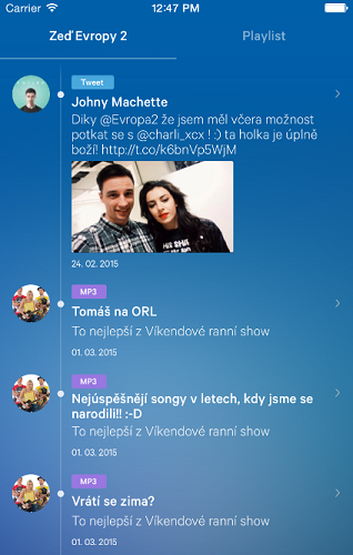„Evropa 2 je kromě éteru i lídrem na sociálních sítích. Jenom na Facebooku mají její oficiální profily přes 780 tisíc fanoušků. Kromě Facebooku a Instagramu se chceme zaměřit i na Twitter, proto jsme se rozhodli propojit naši aplikaci právě s touto sociální sítí,“ uvedla Jitka Fürst, ředitelka rádia Evropa 2.
