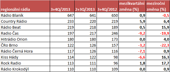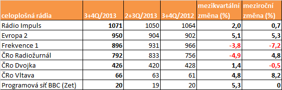 Zdroj: Radio projekt, 3+4. čtvrtletí 2013, SKMO, STEM/MARK, Median