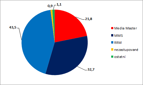Z hlediska postavení rádiových sítí se po změnách v zastupovaných rádiích situace promítla tak, že nejsilnější sítí je Regie Radio Music (RRM) s podílem nad 43 %, síť MMS je dvojkou s podílem necelých 33 %. Oproti minulým datům si RRM polepšila o cca 5 procentních bodů, zatímco MMS si o 5 procentních bodů pohoršila.