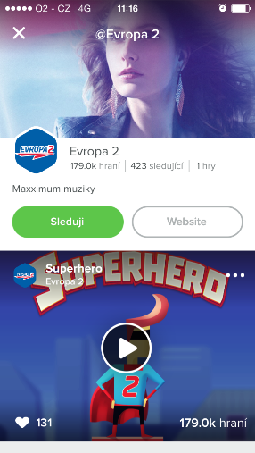 Rádio pro mladé Evropa 2 navázalo spolupráci s českou mobilní aplikací Gamee manželů Řežábových. Od listopadu v této herní platformě uživatelé najdou speciální obsah spojený s Evropou 2. Pustit si tak mohou první hru Evropy 2 s názvem Superhero. Hry fungují na platformách Android a iOS a zároveň v internetovém prohlížeči na počítači.