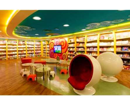 Rovněž velké knihkupecké řetězce si již dávno nevystačí jen s prostými regály s knižními svazky. Kavárny a možnost posezení u knihy je již samozřejmostí, a knihkupci hledají další možnosti využití prodejních ploch. Saraiva Bookstore v brazilském Sao Paulu najal designéry, aby pomohli rozčlenit obchodní plochy do sekcí zábavy, dětské literatury, vzdělání a dokonce i divadla. Mezi knihovnami svítí mobilní displeje zobrazující vybrané tituly a nechybí ani multimediální koutek se čtečkami či mluveným slovem.