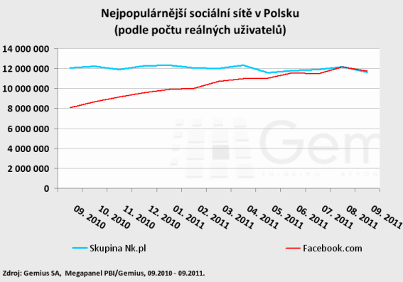 Podle nejnovějších výsledků studie gemiusAudience za září 2011 zaznamenal dosavadní lídr mezi sociálními sítěmi v Polsku, Nk.pl (portál díky kterému je možné najít své spolužáky), poprvé menší počet uživatelů než jeho hlavní soupeř, Facebook.