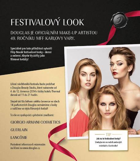 Nový je i oficiální make-up artista, kterým se letos stala parfumerie Douglas. Nastupuje tak na místo L’Oréalu, který byl oficiálním vizážistou v letech 2011 a 2012. Pro Karlovy Vary vytvořil Douglas se svým National Make-Up Artistou Filipem Novákem speciální „festivalové looky“ pro denní a večerní líčení. Po dobu festivalu bude v hotelu Thermal provozovat také speciální Beauty Studio, kde bude možné se na rezervaci nechat nalíčit ve stylu filmových hvězd.