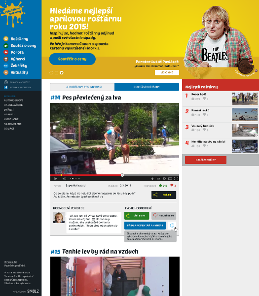 V průběhu celého března bude také probíhat soutěž o nejlepší nápady na rošťárny. „Chceme také motivovat všechny nadšené vtipálky, aby natočili, vyfotili nebo popsali svoje rošťárny, z nichž naši porotci Bára s Lukášem vyberou více než 50, které náležitě oceníme,“ doplňuje Alena Kratochvílová, brand manažerka pro Českou republiku a Slovensko. Soutěž bude podpořena on-line komunikací (VOD - video on demand) a na Facebooku.