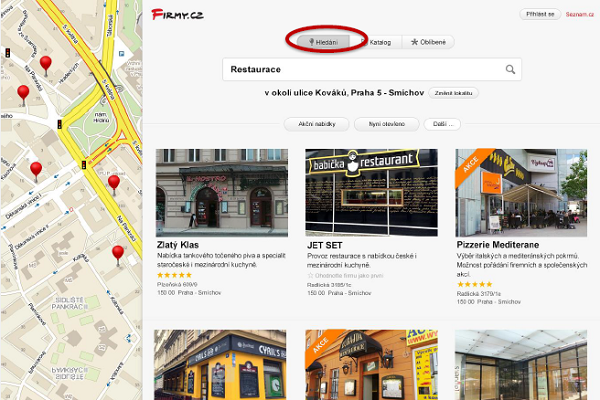 Velký prostor bude nově věnován mapě, fotografiím provozoven a hodnocení. Výraznou novinkou bude automatická detekce lokality, kdy se uživateli zobrazí bez dalšího klikání požadované firmy přímo v jeho okolí. Hledání v katalogu Firmy.cz bude doplněné o filtry vytvořené speciálně podle různých specifik kategorií firem. Například u on-line prodejců bude možné vybrat jen ty, kde se dá platit kartou, či ty s vlastními výdejními místy. U restaurací bude možné filtrovat místa, která mají právě otevřeno, disponují zahrádkou, jsou nekuřácké aj.