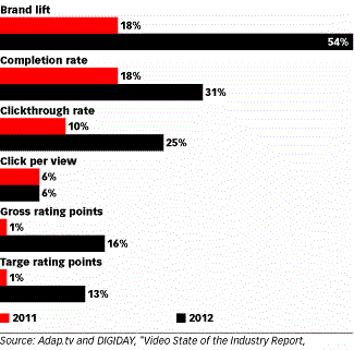 Již o poznání méně než v případě výše zmíněných technik pak firmy pro měření online spotů vyhledávají míru prokliku, click per view a pro televizi klasické GRP. Ačkoliv i tyto metodiky si při srovnání s rokem 2011 letos osvojilo více zadavatelů.